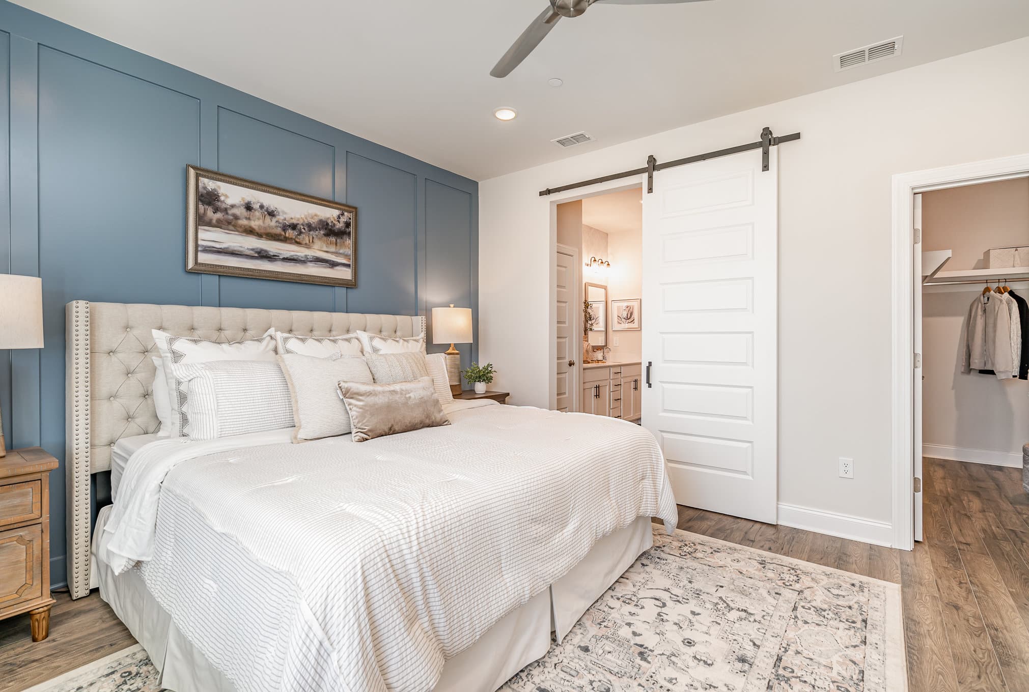 One of the easiest ways to personalize your new home is with an accent wall. Whether it’s a board and batten treatment in the primary suite or a pop of color, accent walls add depth, charm, and visual interest.