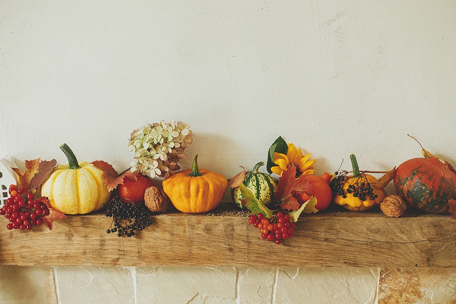 You can’t have fall without pumpkins! Place pumpkin décor on the coffee table, on the mantel, or stacked as an accent.