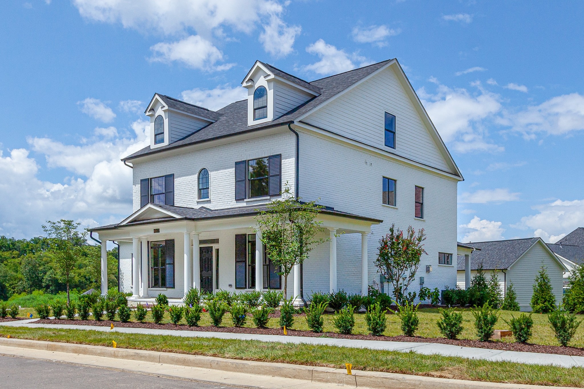 Painted white brick with black windows and a wrapped porch. Covered rear patio with an expansive homesite, sodded yard and irrigation.[/vc_column_text][vc_column_text]Neighborhood Sales Managers